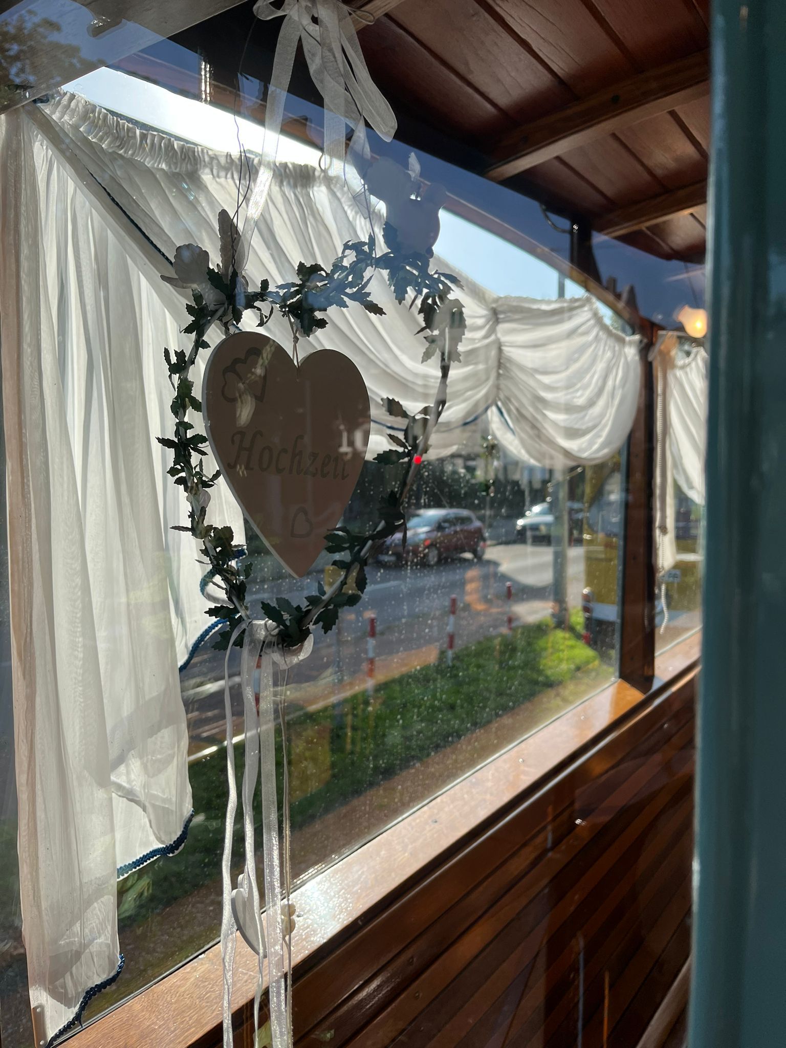 Für das „Rollende Trauzimmer" haben Vereinsmitglieder schon am Freitagnachmittag (08.09.2023) gemeinsam den Enzian geschmückt, denn am Samstag (09.09.2023) begann der Tag früh. Um 8:30 Uhr fuhren die Ersten bereits mit beiden Fahrzeugen zur Grenzstraße, wo weitere Mitglieder hinzustießen. Dort wurden weitere Vorbereitungen getroffen. Die erste Trauung begann um 10 Uhr. Anschließend fuhren wir die Hochzeitsgesellschaft nach Fischeln und weiter zur Innenstadt über die Haltestelle Rheinstraße und die Uerdinger Straße zur Grenzstraße. Nach einer kurzen Verschnaufpause folgte die nächste wundervolle Hochzeit im Blauen Enzian. Auch für dieses Paar, ihre Familie und Freunde führte die Route nach Fischeln und zurück durch die Innenstadt zur Grenzstraße. In einer Pause konnten wir uns stärken und zwei Paare, die ihre Hochzeit im nächsten Jahr planen, haben sich den schön geschmückten Enzian bereits vorab ansehen. Bei der dritten Hochzeit wurde das Brautpaar von der Feuerwehr Krefeld überrascht. Nach dem Ja-Wort ging es für das Brautpaar mit einer Drehleiter hoch hinauf. Auch wir hatten die Möglichkeit, von der Drehleiter aus Fotos zu machen, vielen lieben Dank dafür an die Feuerwehr Krefeld. Nach diesem beeindruckenden Spektakel begaben wir uns auf die letzte Etappe. Wieder an der Grenzstraße angekommen verabschiedeten wir unsere Gäste und räumten gemeinsam auf. Zurück im Depot wurde der Enzian abgeschmückt und die Dekoration verstaut. Wir freuen uns schon auf das nächste Jahr. Zur Information: Das Rollende Trauzimmer findet am 29.06.2024 statt. Weitere Details findet ihr unter dem Reiter "Rollendes Trauzimmer".
