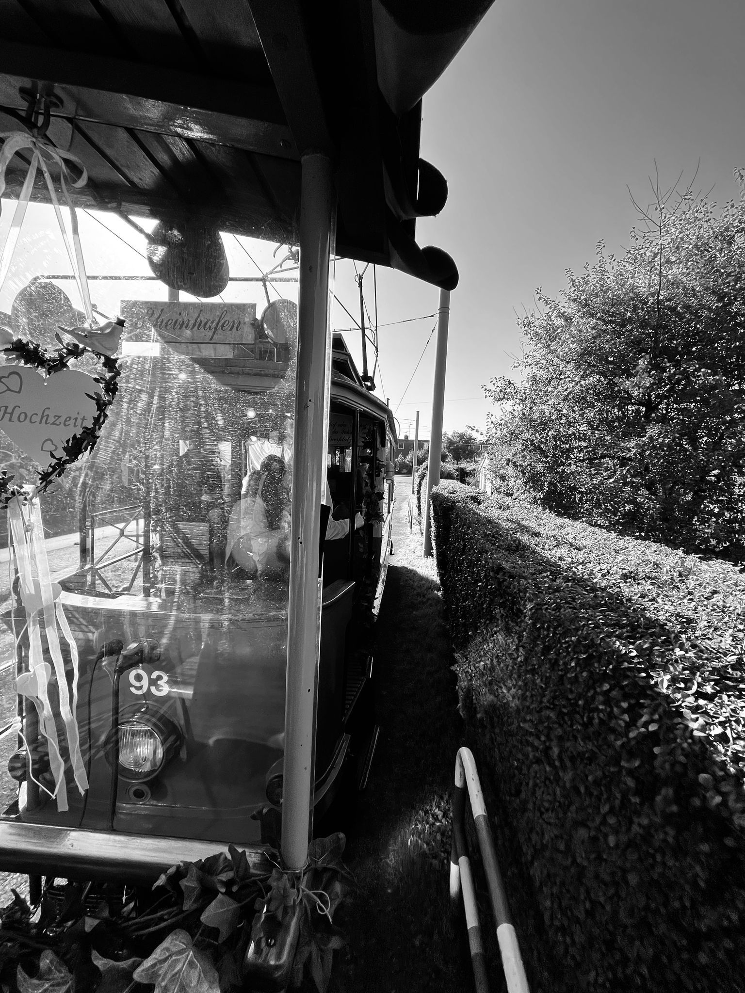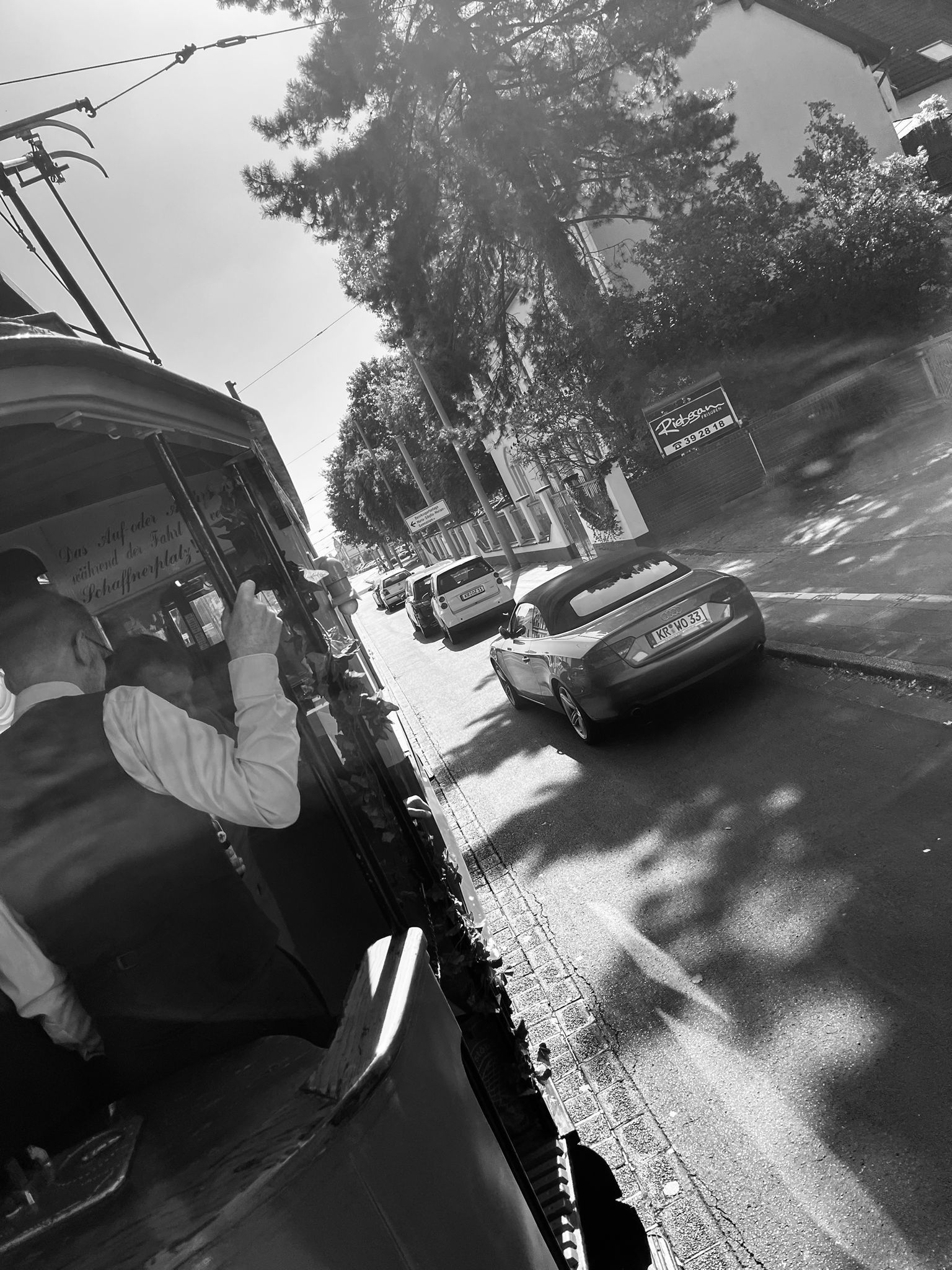Die erste Trauung begann um 10 Uhr. Anschließend fuhren wir die Hochzeitsgesellschaft nach Fischeln und weiter zur Innenstadt über die Haltestelle Rheinstraße und die Uerdinger Straße zur Grenzstraße.