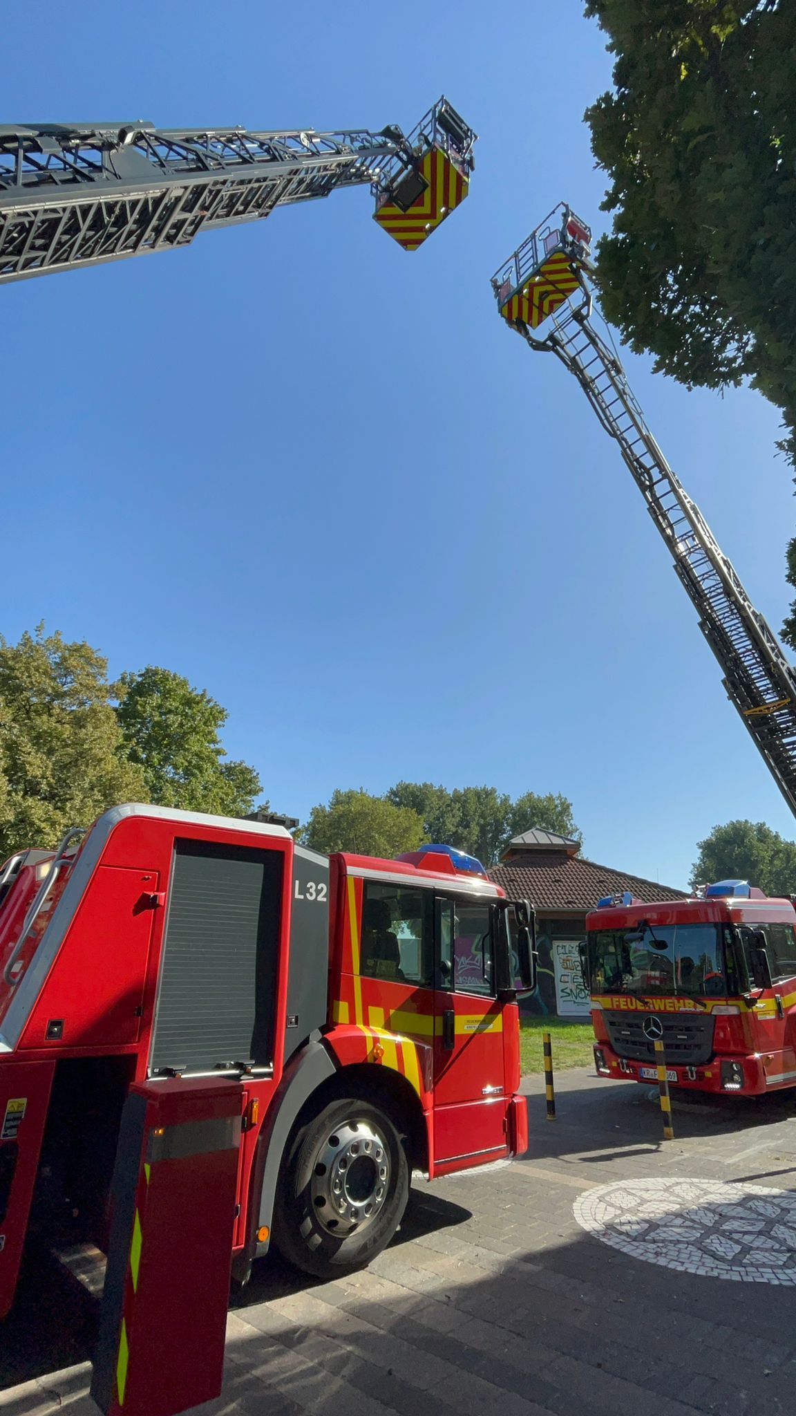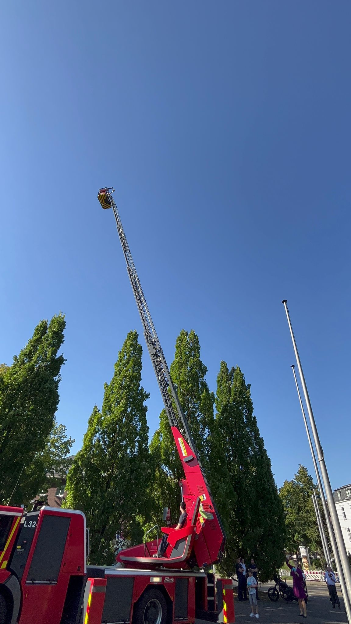 Bei der dritten Hochzeit wurde das Brautpaar von der Feuerwehr Krefeld überrascht. Nach dem Ja-Wort ging es für das Brautpaar mit einer Drehleiter hoch hinauf. Auch wir hatten die Möglichkeit, von der Drehleiter aus Fotos zu machen, vielen lieben Dank dafür an die Feuerwehr Krefeld. Nach diesem beeindruckenden Spektakel begaben wir uns auf die letzte Etappe.