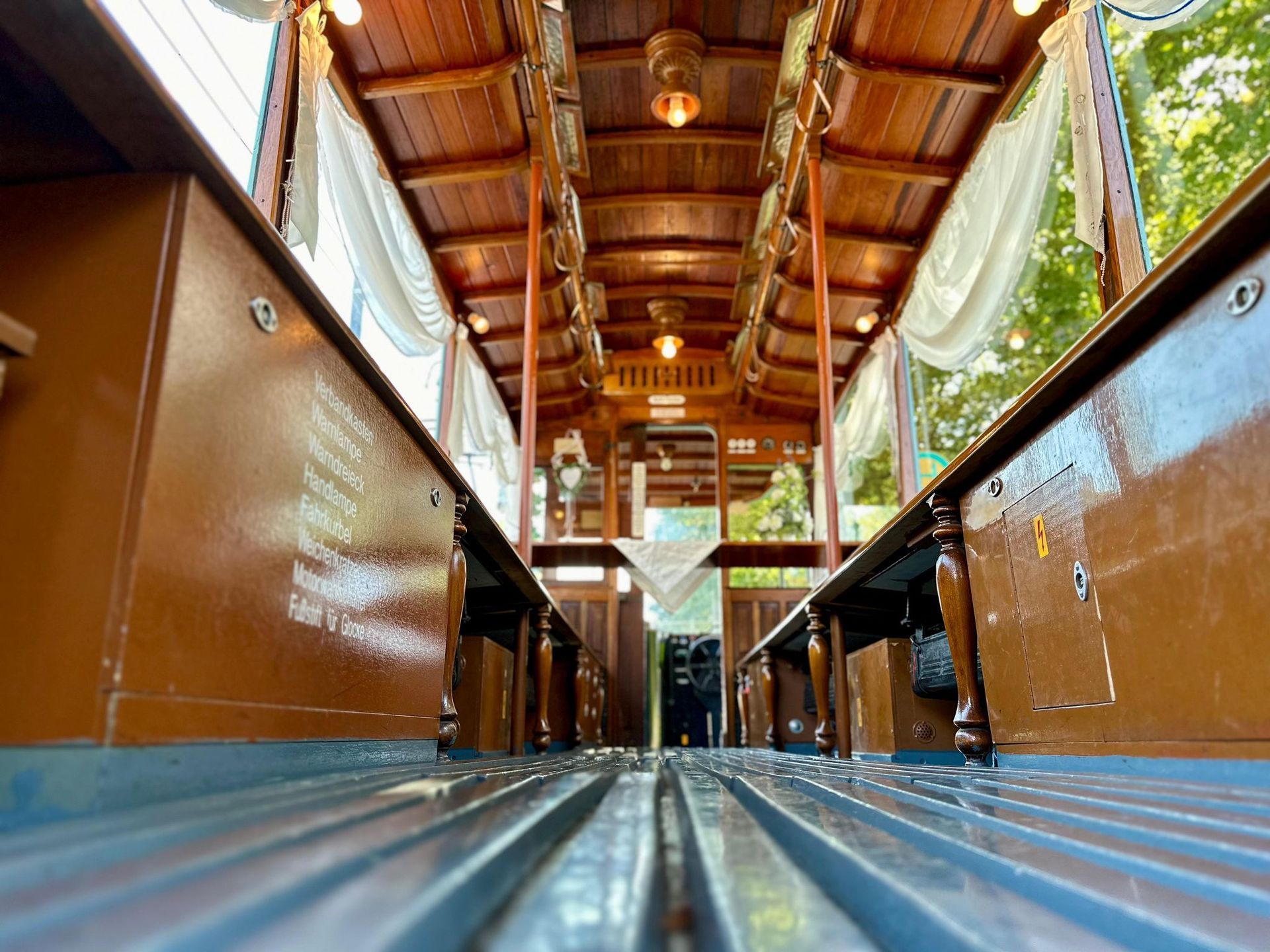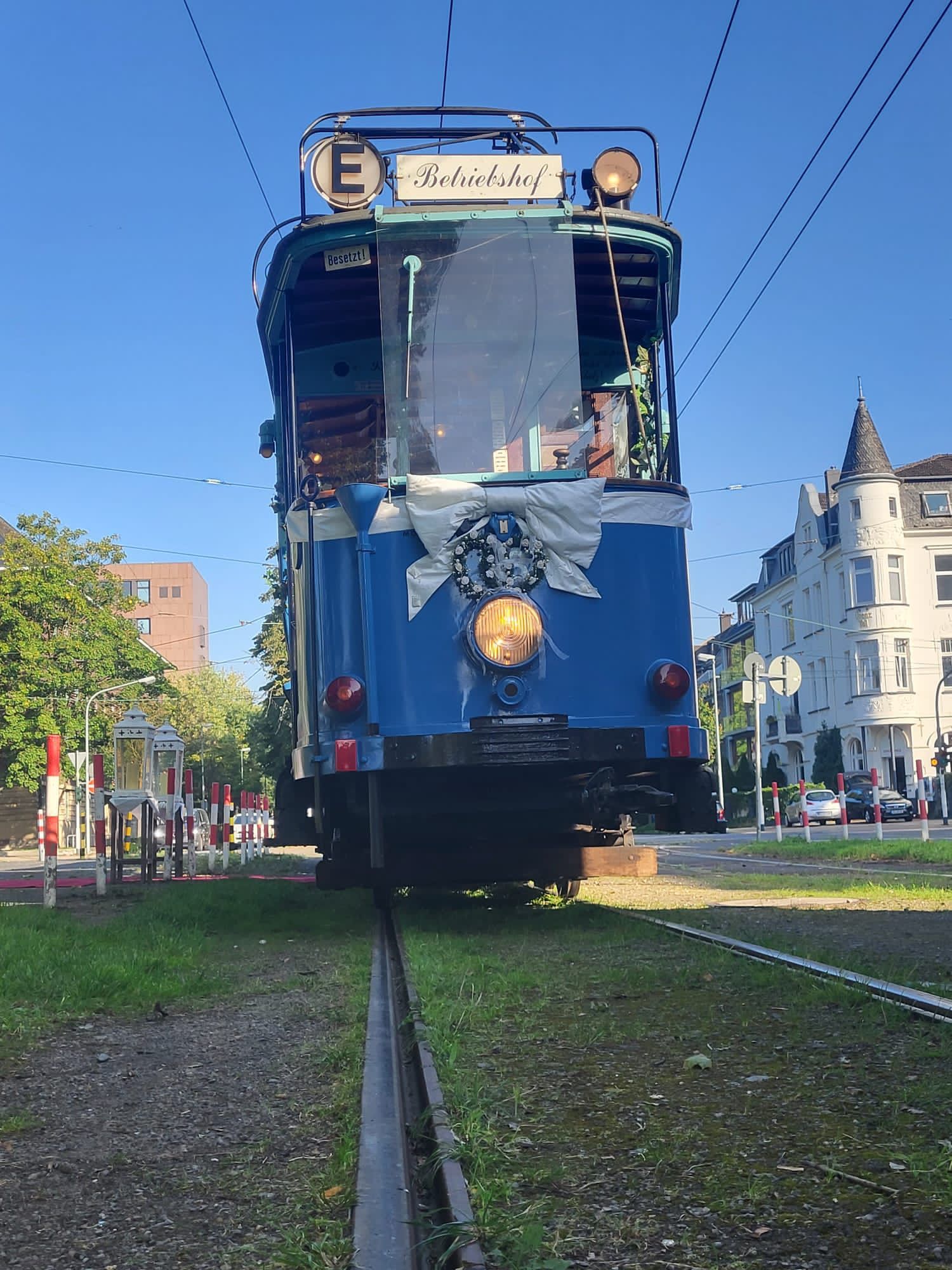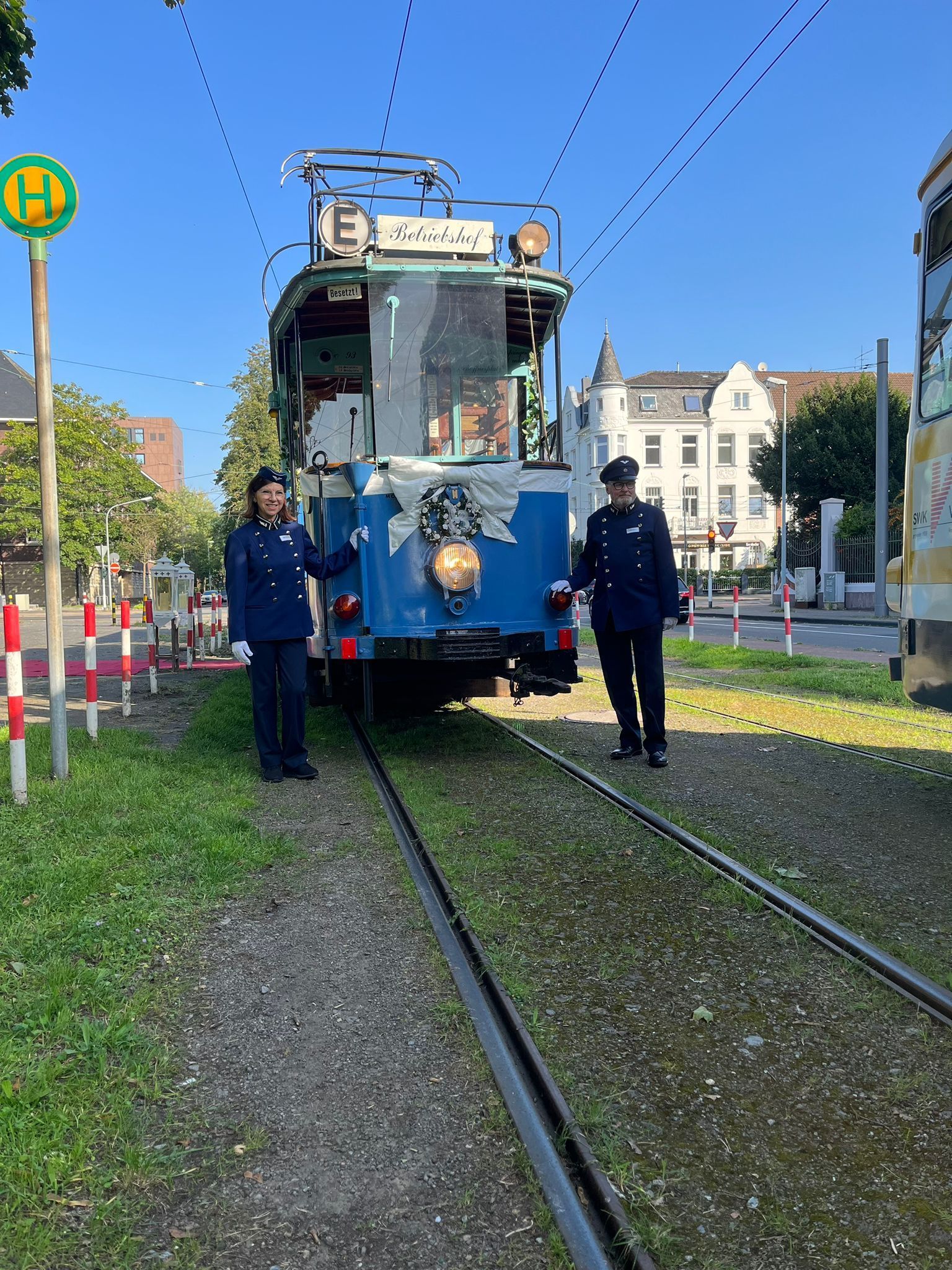 Sie erregen immer wieder Aufmerksamkeit und positiven Zuspruch: Die beiden historischen Straßenbahnen der SWK MOBIL, die von den aktiven Mitgliedern des Vereins Linie1 im Rahmen vermieteter Sonderfahrten ehrenamtlich gefahren werden. Da ist zum einen der Triebwagen 626 – die „PartyTram“ – und zum anderen natürlich der „Blaue Enzian“, ein Straßenbahnzug, bestehend aus dem Triebwagen 93 und dem offenen Sommerbeiwagen 49. Während die beiden „A-Wagen“ (der erste Teil eines Gelenkwagens), aus denen der „626“ vor 40 Jahren als Fahrschulbahn zusammengebaut wurde, ursprünglich 1964 bei der KREVAG in Dienst gestellt wurden, stammt der „93“ aus der ersten Serie elektrischer Straßenbahnen, die 1900 in Krefeld ihren Betrieb bei der „Crefelder Straßenbahn“ aufnahm. Dieses Prunkstück, das wegen seiner blauen Farbgebung den Namen „Blauer Enzian“ trägt, feiert somit im nächsten Jahr seinen 125. Geburtstag, und fährt immer noch!                                                    In der Regel sind beide Wagen allein unterwegs, also entweder der „Blaue Enzian“ oder die „PartyTram“ (diese mittlerweile in ihrem „dritten Leben“ mit Theke und Kühlschränken ausgestattet); manchmal fahren beide auch zeitgleich, aber jeder für sich auf unterschiedlichen Routen. Am Sonntag, den 9. Juni 2024, war das freilich anders: Angeführt vom „Blauen Enzian“, immer gefolgt von der „PartyTram“, fuhren beide Bahnen einträchtig hintereinander erst zum Sprödentalplatz, von dort nach Fischeln und anschließend zum Rheinhafen, um die Fahrt dann wieder am Krefelder Sprödentalplatz zu beenden.                                                              Sprödentalplatz? Hat da nicht gerade der Circus Roncalli sein Zelt aufgeschlagen und verzaubert dort das begeisterte Publikum? Genau! Dieser Umstand und ein winziger Zufall am Samstag eine Woche zuvor führten nun zu dieser großen Fahrt … mit rund 60 ganz besonderen, interessanten Fahrgästen.                                                              Was war passiert? Am besagten Samstag war der „Blaue Enzian“ in Krefeld unterwegs. Und ganz kurzfristig wurde beim letzten Teil der Fahrt die Route geändert und der Wagen fuhr nicht – wie vorgesehen – über die Oppumer Straße zur Grenzstraße, sondern über die wegen ihres Alleecharakters schönere Uerdinger Straße. Vor der Ampel an der Grenzstraße musste der „Enzian“ halten – direkt vor dem Bürowagen des Roncalli-Tourmanagers. Der war gewissermaßen „elektrisiert“ von dem sich ihm bietenden Anblick, stürmte aus seinem Wagen und nahm Kontakt zu den Linie1-Fahrern auf der offenen Plattform der alten Straßenbahn auf. Aus der anfänglichen Begeisterung für diese wunderbare alte Fahrzeug entwickelte sich spontan die Idee einer Sonderfahrt, die das gesamte Roncalli-Ensemble durch Krefeld führen sollte.                                                              Bereits am Mittwoch darauf trafen sich der „Blaue Enzian“ und die Circus-Roncalli-Künstler zu einem Fototermin, bei dem die quirligen Artisten in ihren eindrucksvollen, phantasievollen Kostümen sofort jeden Winkel der Straßenbahn gut gelaunt in Besitz nahmen. Dabei entstanden viele schöne Bilder, die unter anderem im Krefelder Extra-Tipp unter dem Titel „Circus Roncalli“ trifft Linie1“ veröffentlicht wurden.                                                              Am Sonntag, den 9. Juni, schließlich holte die Linie1 die Roncalli-Truppe nach der Vorstellung gegen 18 Uhr mit beiden historischen Bahnen ab, um mit diesen ungewöhnlichen, gleichermaßen fröhlichen wie freundlichen Menschen unterschiedlichster Nationen zu einer über zweistündigen Rundfahrt durch unsere Stadt zu starten. Die ausgelassene, tolle Stimmung während der Fahrt und die ganz besonderen Fahrgäste werden den beteiligten Ehrenamtlern der Linie1 lange in bester Erinnerung bleiben.