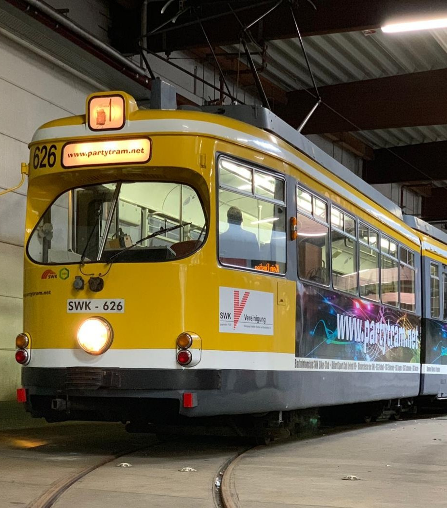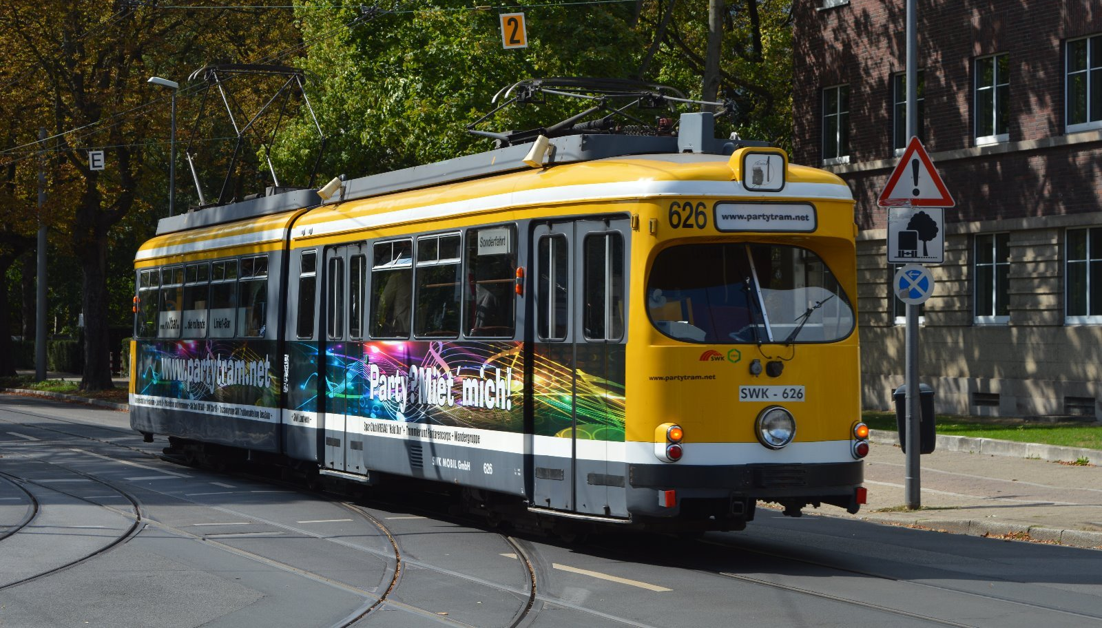 Die PartyTram wurde 1984 aus den „A-Teilen“ der Wagen 602 und 606 (jeweils Baujahr 1964) zusammengesetzt. Bis 2009 wurde das Fahrzeug als Fahrschulwagen für die Linienfahrzeuge der Firma DÜWAG eingesetzt. Seit 2014 ist das Fahrzeug Teil von Linie 1 und mit integrierter Musikanlage, zwei Kühlschränken und einer Theke als Party-Bahn unterwegs. Die Bahn bietet bis zu 30 Personen Platz.